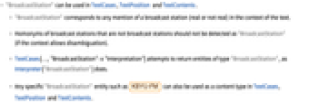 - Any specific "BroadcastStation" entity such as can also be used as a content type in TextCases, TextPosition and TextContents.