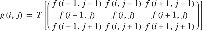 Most useful image processing operators are area based. Area-based operations calculate a new pixel value based on the values in a local, typically small, neighborhood. This is usually implemented through a linear or nonlinear filtering operation with a finite-sized operator (i.e., a filter). Without loss of generality, consider a centered and symmetric 3×3 neighborhood of the image pixel at position