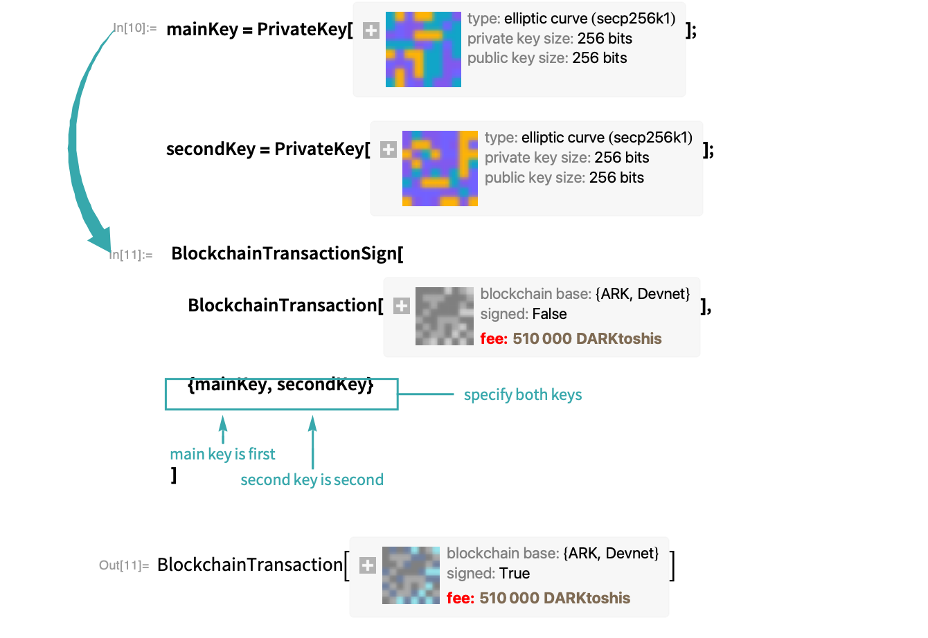From now on, all of the transactions signed by this address should use a list of the main and second private keys in that order: