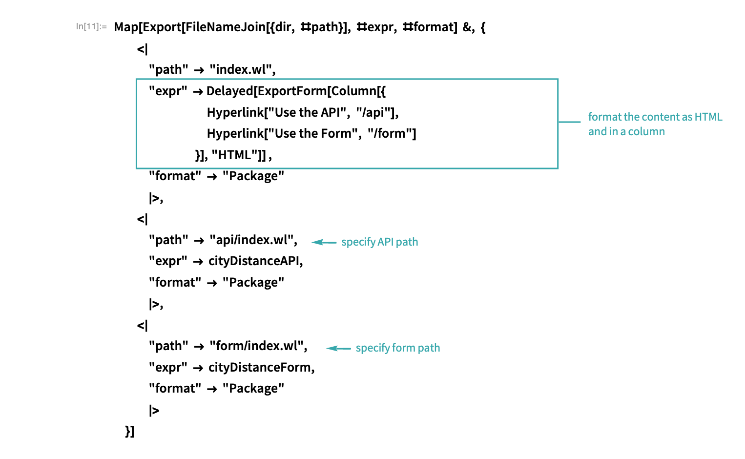 Use Map to batch export the app files to their appropriate locations, including both the API and the form: