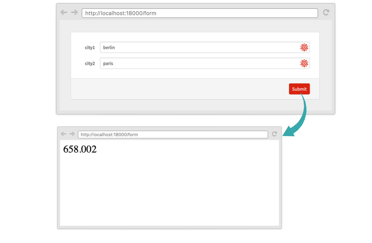Go to http://localhost:18000 and click the Use the Form hyperlink to be taken to the appropriate endpoint: