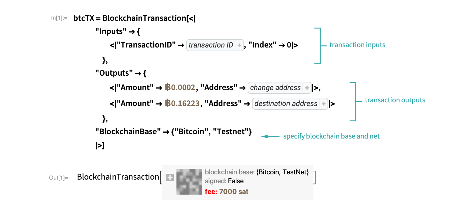 - You must provide the private key that unlocks the outputs referenced in the “Inputs” field of the BlockchainTransaction object.