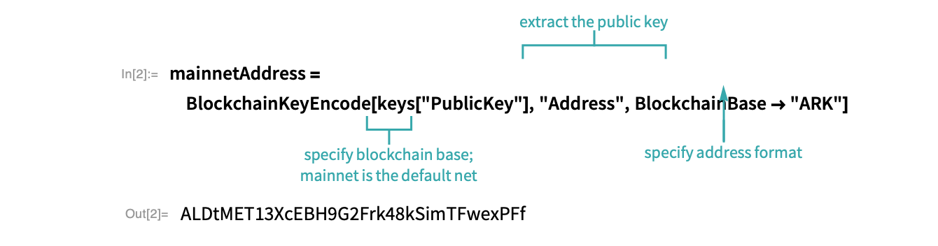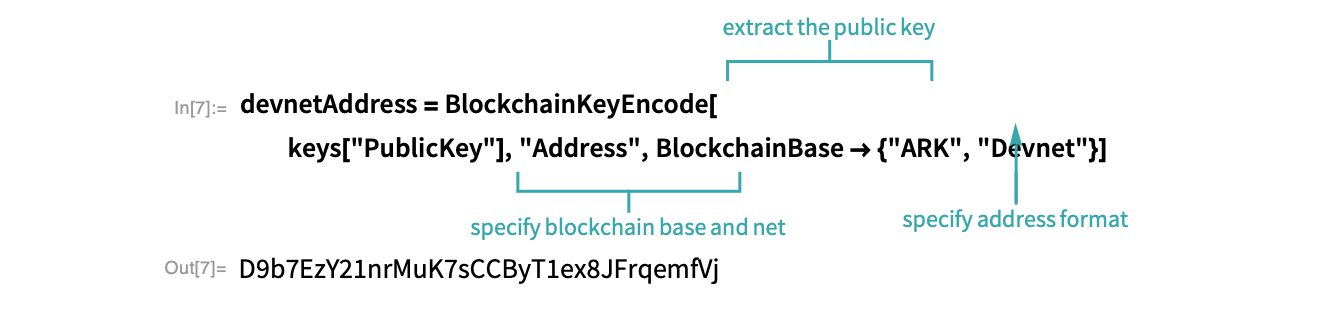 Use BlockchainKeyEncode to derive a unique new ARK address from the public key: