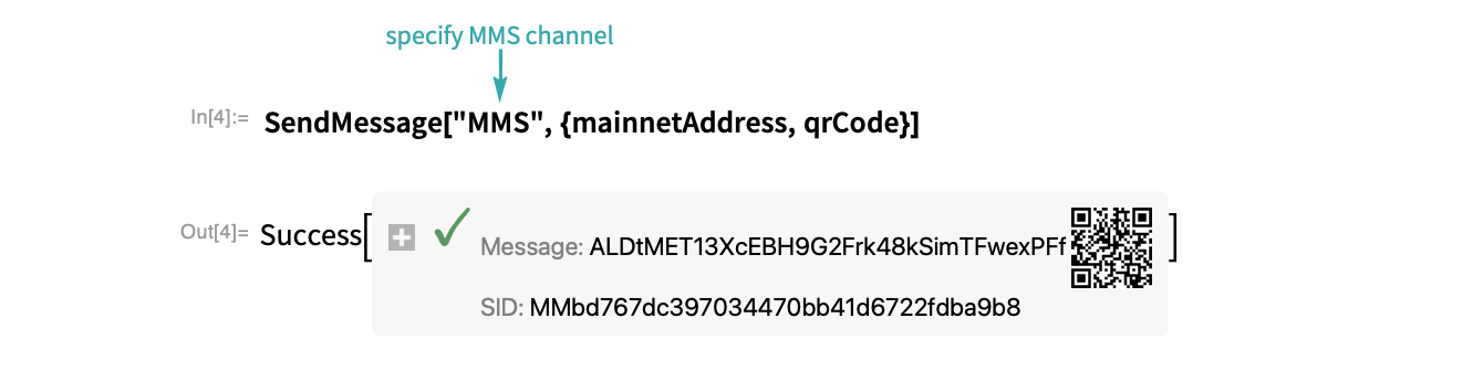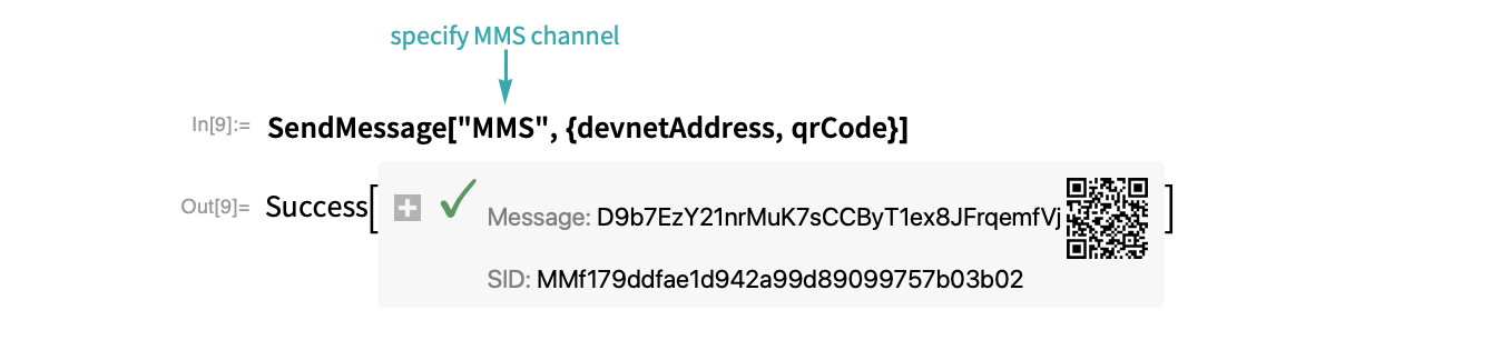 - If this is the first time you are sending a message, you will need to add a phone number to the Wolfram Integrated Services framework. Verify the phone number, then rerun SendMessage.