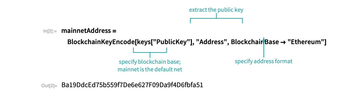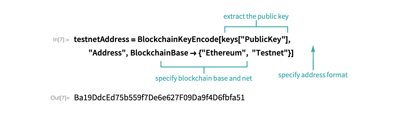 Use BlockchainKeyEncode to derive a unique new Ethereum address from the public key: