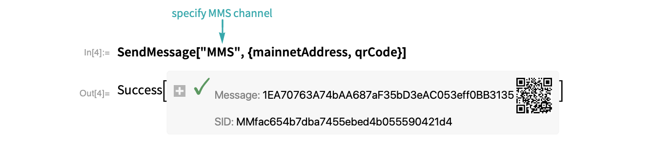 - If this is the first time you are sending a message, you will need to add a phone number to the Wolfram Integrated Services framework. Verify the phone number, then rerun SendMessage.