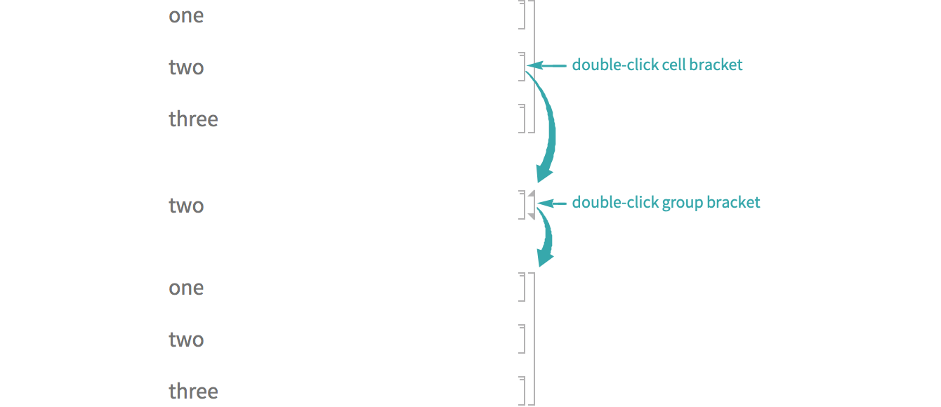 Double-click a cell in a group to hide the other cells in the group. Double-click a collapsed cell group bracket to open the group: