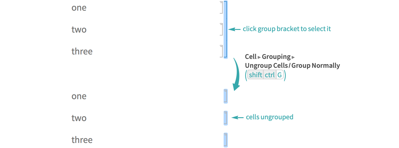 Click the group cell bracket and choose Cell ▶ Grouping ▶ Ungroup Cells/Group Normally (