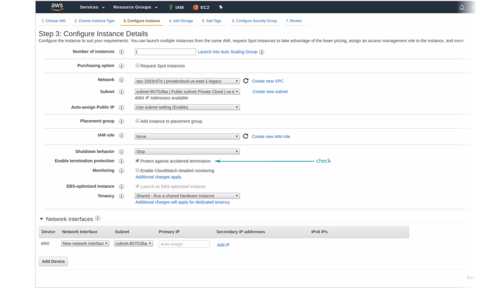 Check the box marked “Protect against accidental termination”: