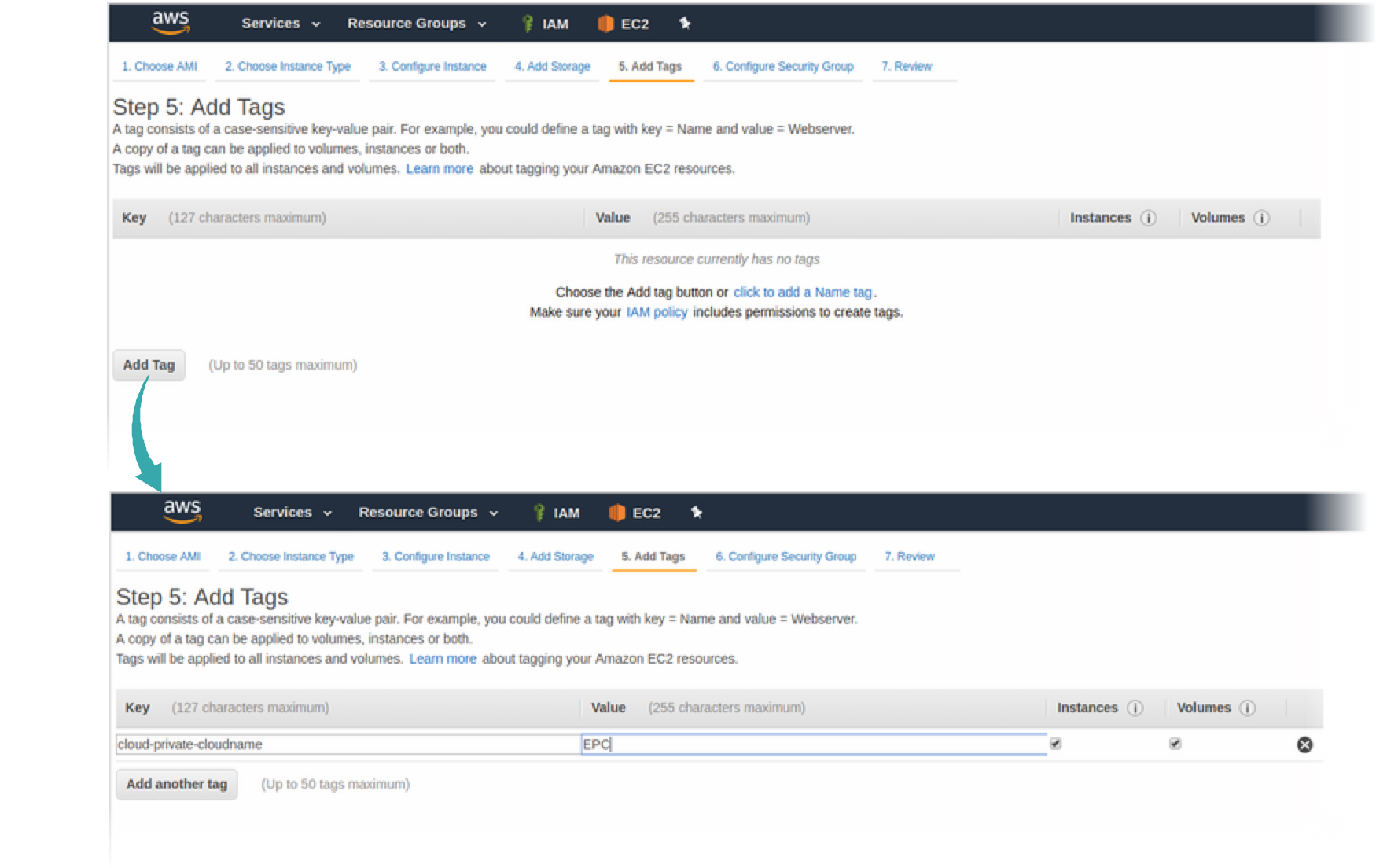 In order to identify your EPC instance, add a tag or tags: