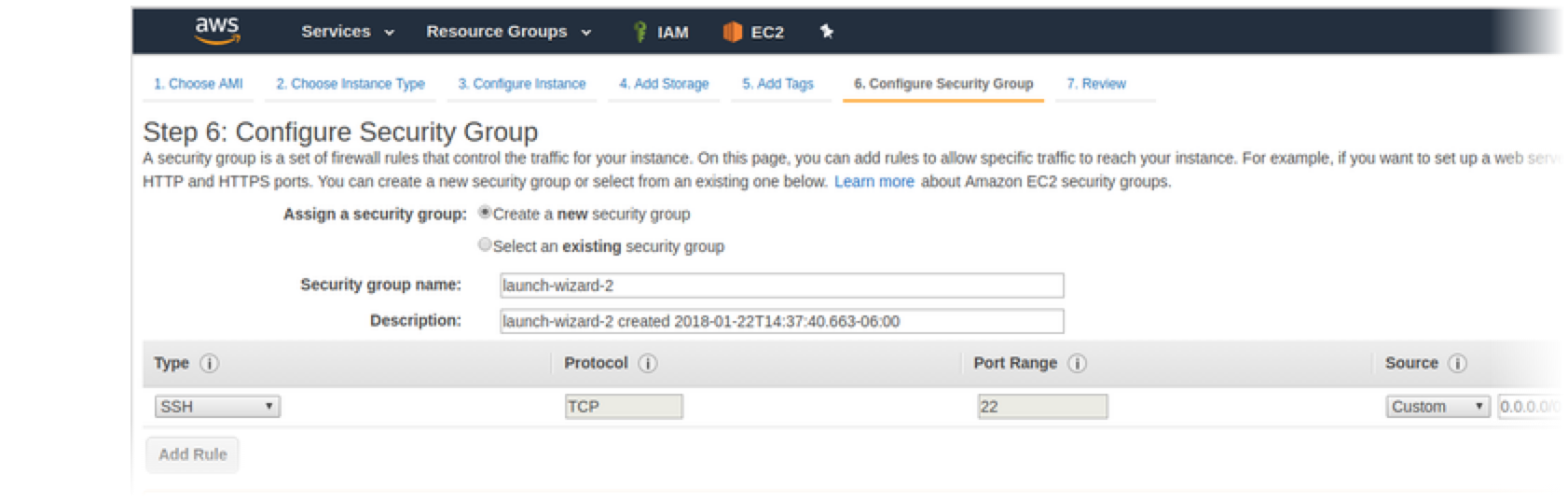 Configure a new security group: