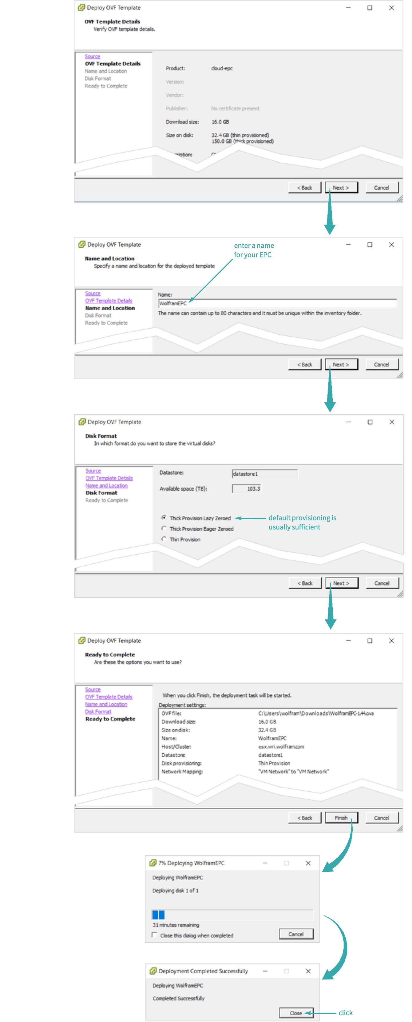 Click Next to begin deploying EPC: