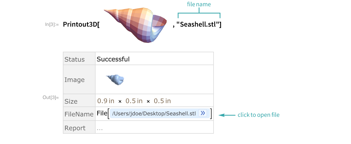 - If no path is given in the file name, Printout3D will save the model to your working directory as given by Directory[].