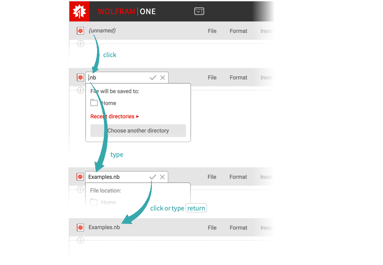 Click the notebook name in the upper-left corner to name or rename a notebook: