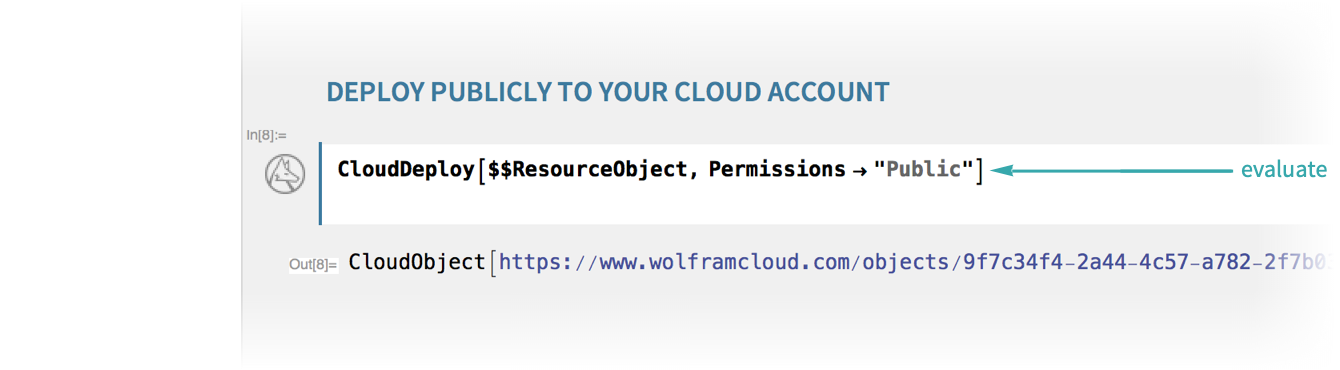 To create a new personal data resource and simultaneously publish it, follow the steps in Set Up a Personal Data Resource. When you reach the “Deploy the data resource” step, evaluate the CloudDeploy expression in the “Deploy Publicly to Your Cloud Account” field: