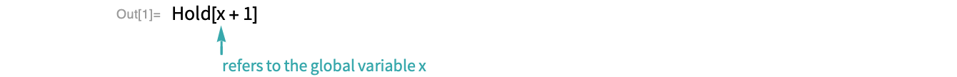 Because Hold has the attribute HoldAll, x is not evaluated when the held expression is defined, so the body of the expression refers to the global variable x. The value of x is obtained when the Hold is released: