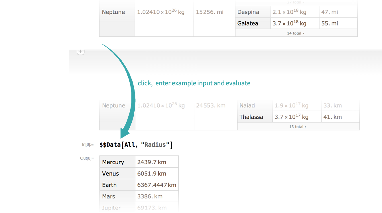 - If the $$Data example will produce a very large output, you may want to modify the input expression to shorten the output. For example, for a very long text output, you might replace $$Data with Snippet[$$Data, 12].